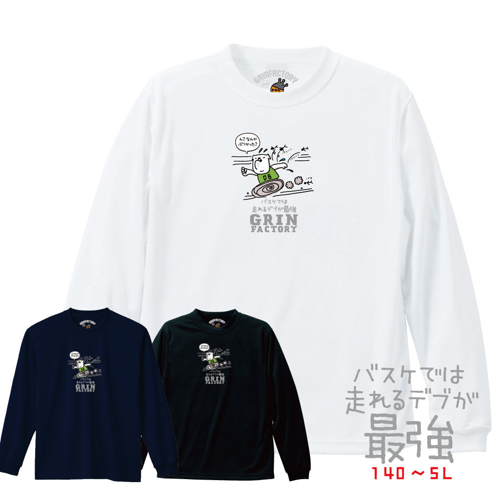 バスケ格言Tシャツ 長袖「バスケでは走れるデブが最強」吸水速乾 ポリエステル100%