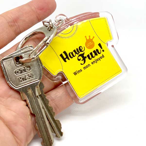 格言キーホルダー「どんなしんどいことも楽しんだもん勝ち」