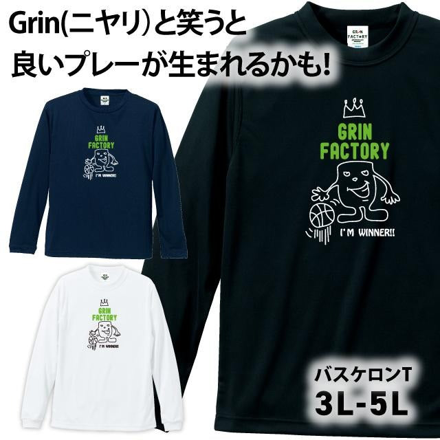 バスケTシャツ 長袖「GRIN君」吸水速乾 ポリエステル100%